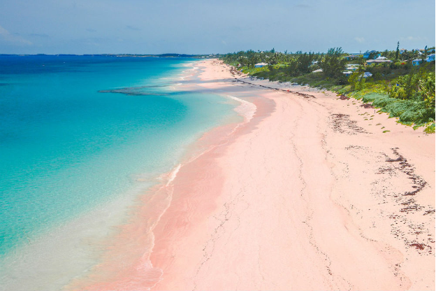Природа порой удивляет, рисуя пейзажные картины яркими красками. В разных точках мира можно найти удивительные розовые пляжи, контрастирующие с лазурными водами морей и океанов. Цвет песка получается за счёт мелких частиц кораллов и розовых ракушек, которые волны выносят на берег. Самый известный розовый берег находится на Багамских островах, о. Харбор.