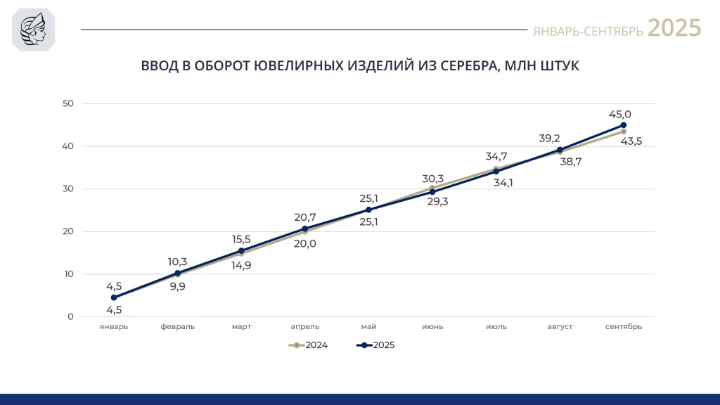 Производство ювелирных изделий из серебра, январь-сентябрь 2025 года