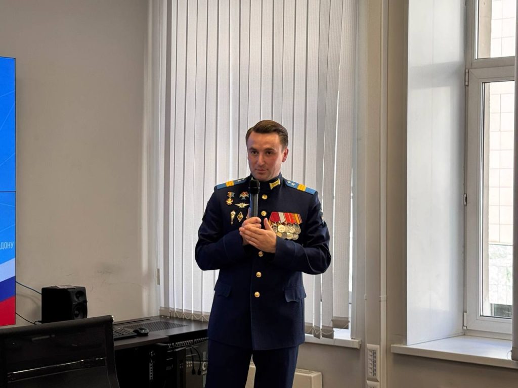 После рассказа сотрудники смогли задать Александру свои вопросы. Их интересовало многое: от деталей его профессионального пути и умения справляться со стрессом в бою до роли поддержки граждан и государственной помощи ветеранам СВО.